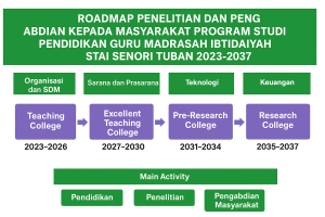 Peta jalan (roadmap) penelitian Program Studi PGMI STAI Senori Tuban dirancang sebagai panduan pengembangan riset yang mendukung visi program studi yang berorientasi pada nilai-nilai keislaman, kebijakan lokal, serta adaptasi teknologi digital. Roadmap ini tertuang dalam SK Ketua STAI Senori Tuban tentang Roadmap Penelitian dan Pengabdian Prodi PGMI No 018.01/D.1/SK.STAI.ST/X/2023.